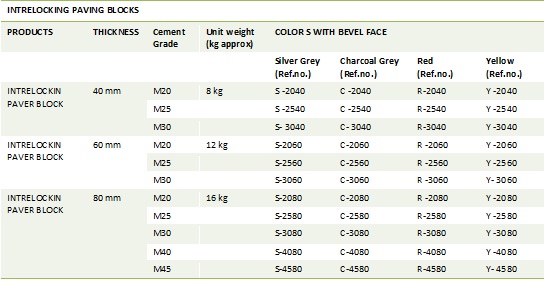 KRISHNA TILES INDUSTRY produces a widest range of contemporary block paving designs and regularly develops and upgrades its product range and design to cope with the globalised market. All designs are available in standard thickness of 40mm, 60mm, 80mm with standard M15, M20, M25, M30, M35 grade of concrete depending on the type of application.